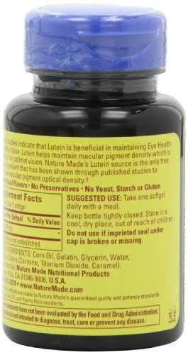 Clinical studies indicate that Lutein is benificial in maintaining eye health healthy vision. Lutein helps maintain macular pigment density which is essential for optimal vision. Nature Made's Luein source is the only free Lutein ingredient that has beeFeature