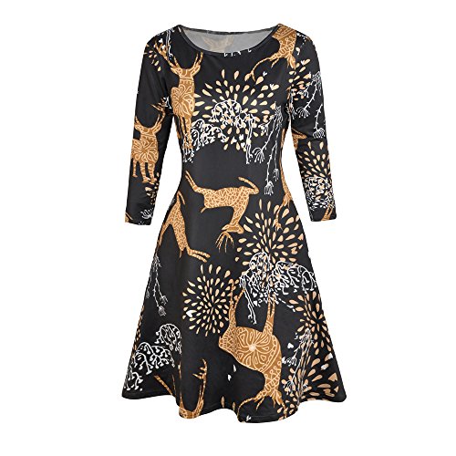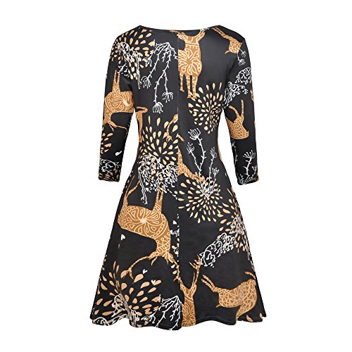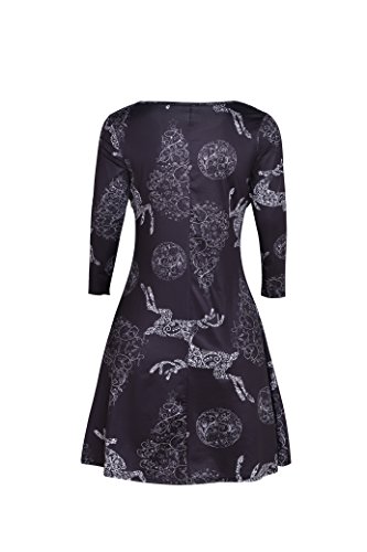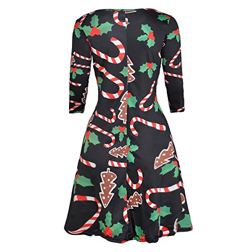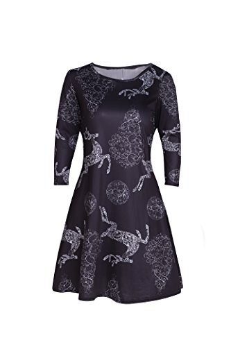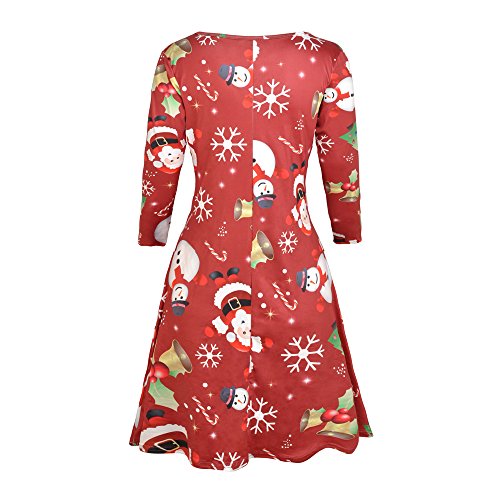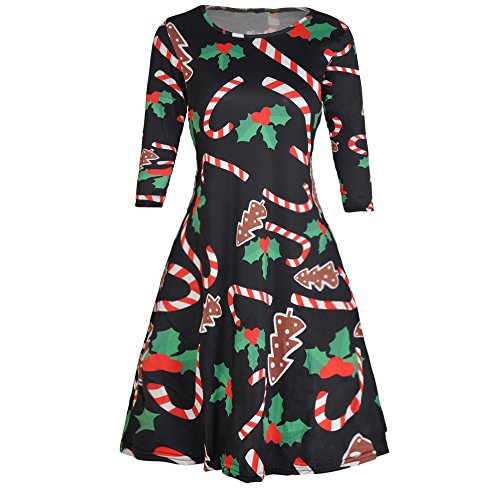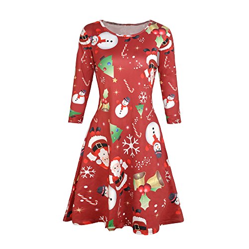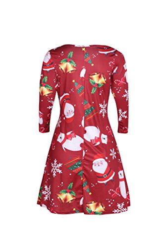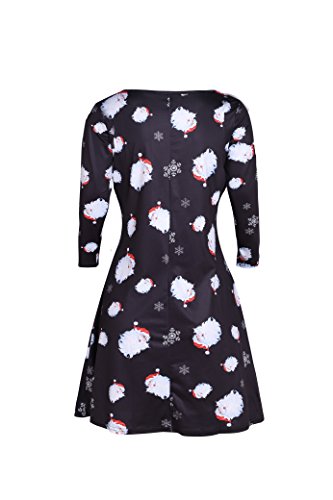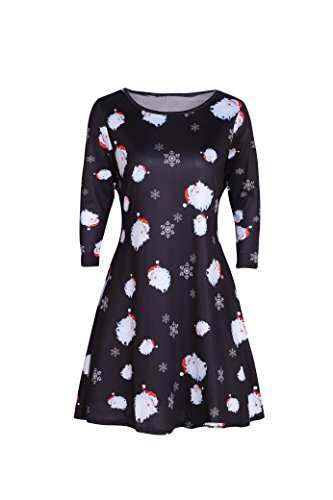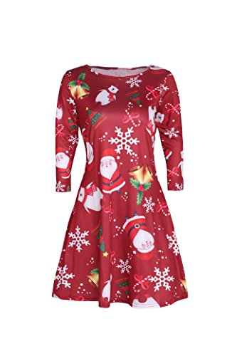 Kbook Women's Long Sleeve Christmas Santa Claus Print Pullover A Line Flared Swing Dress