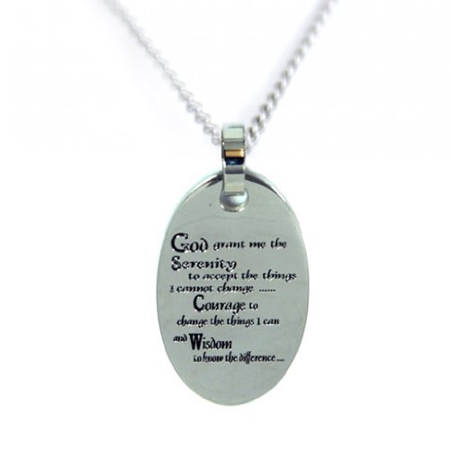 -. Title : Serenity Prayer Pendant Necklace - Oval Shaped Stainless Necklace - 12 Step Jewelry - Religious Necklace
