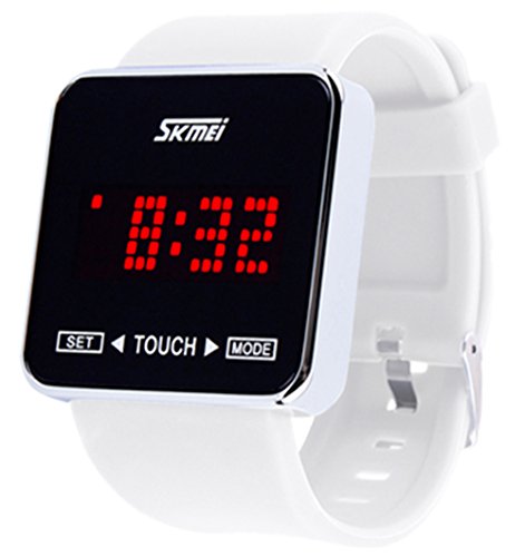 -. Title : Unisex Children's Girls Simple Design Square Dial Rubber Band Digital Touch Led Screen White Wrist Watch