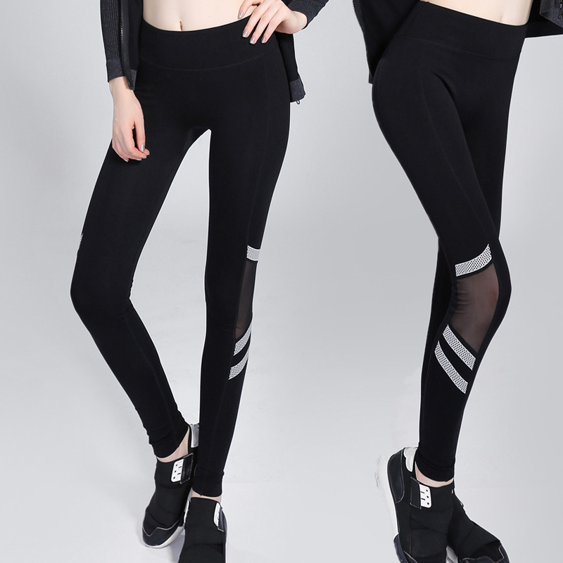 Women Sexy Fitness Yoga Pants Reflective Night Running Mesh Patchwork Leggings Slim Gym Training Quick Dry High Elastic Tights