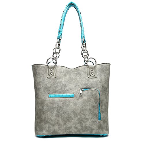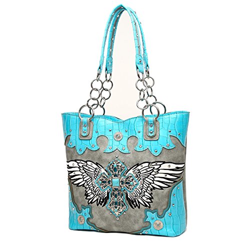 Western Tote Bag - Large Cross with Studded Embroidered Wings Top Handle Tote Bag