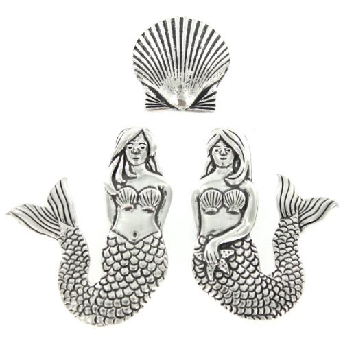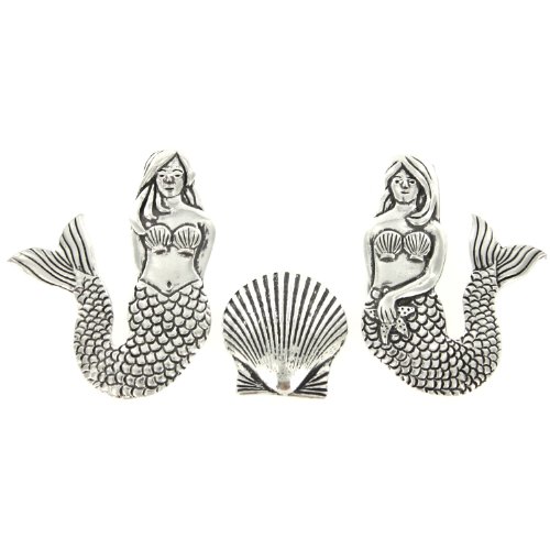 Pewter Mermaids and Scallop Seashell Magnets Set of 3