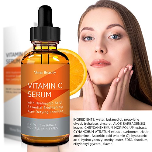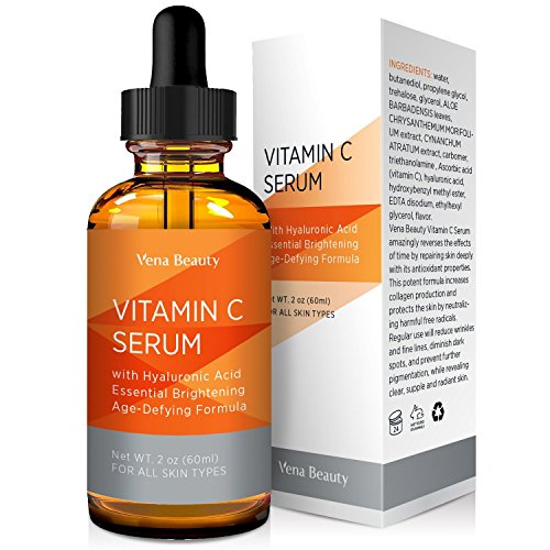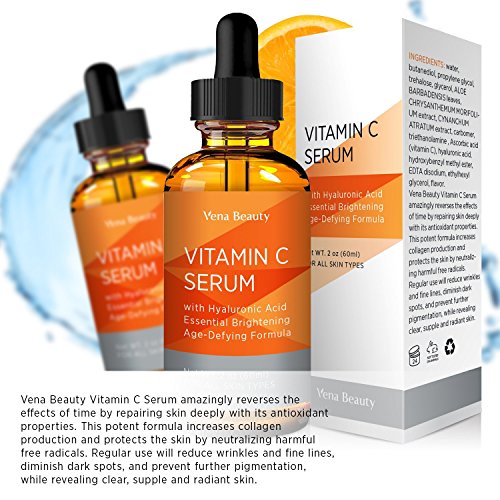 Vena Beauty Vitamin C Serum is packed with high quality goodness and is a natural antioxidant for the skin. This powerful and effective formula will help diminish visible fine lines and wrinkles, increase collagen production, fade away brown spots, protect skin from further pigmentation, keep skin firm and youthful, and even out skin tone. Made for all skin types, our formula is truly gentle and effective in repairing and renewing skin. Your skin will feel more youthful and vibrant than ever before. Directions: Clean and dry your face. Gently massage a pea-sized amount of Vena Beauty Vitamin C Serum to your face, neck and décolleté followed by your regular moisturizer. For best results, we recommend using this serum every day for a minimum of 3-4 weeks. NET CONTENT: 2 FL oz (60ml)