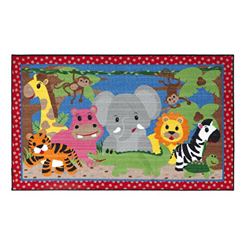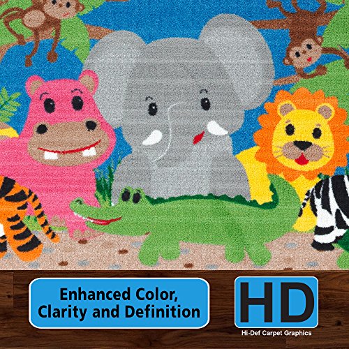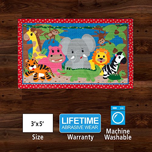 Flagship Carpets CE418-12W Multi Cutie Jungle Rug, Washable with Skid-Resistant Backing, Nursery School Classroom, Children's Kids School Rug, 3' x 5'