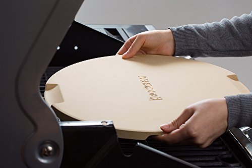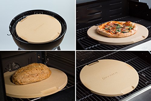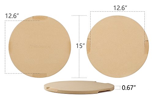 Pizza Stone 15" Round Baking & Grilling Stone, Perfect for Oven, BBQ and Grill. Innovative Double - faced Built - in 4 Handles Design