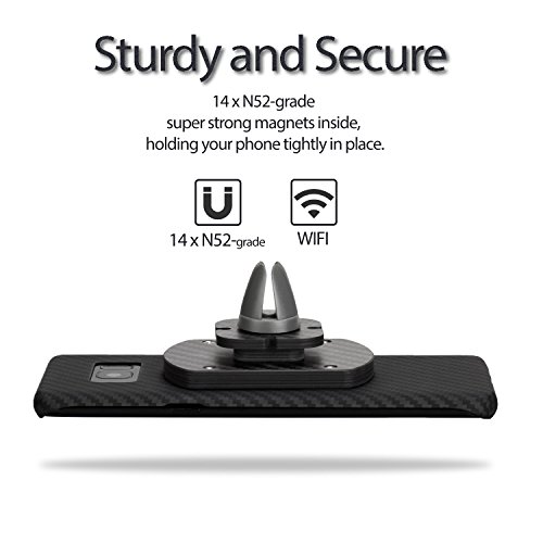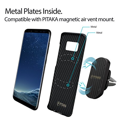 Metal plates built in the compatible PITAKA S8/S8 + case are specially designed and won't block wireless charging; This car mount is also compatible with other devices by sticking adhasive metal plate; Package Includes : 1 x Carbon fiber magnetic car mount; 1 x Rectangular metal magnetic plate