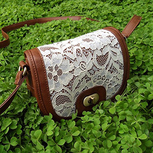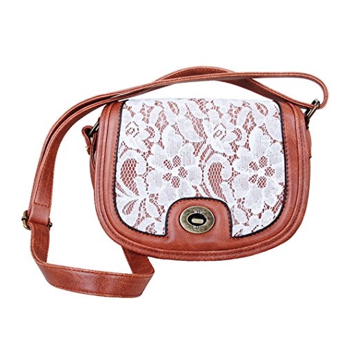HEYFAIR Women's One Shoulder Purse Small Bag Brown Pu Leather with White Lace