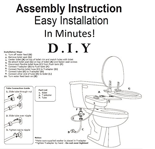 -. Feature : Elegant and Hygienic- Turn Your Ordinary Toilet into a Luxurious Bidet in Just Minutes. / Easy and Quick Self Installation- All Accessories Included, Rust Proof, Non-Electric and Compatible with Virtually All Toilets. / Highest Quality Tested Parts- High-pressure faucet quality valves, metal/ceramic core, and braided steel hoses (instead of traditional plastic). / A Convenient, Healthy and Fresh Alternative to Toilet Paper Leaving You Feeling Fresh and Shower Clean After Every Use. / 1 Year Warranty- Easy Breezy Bidet's are Built to Last and are Backed by a One-Year Manufacturer's Warranty or you get your money back.