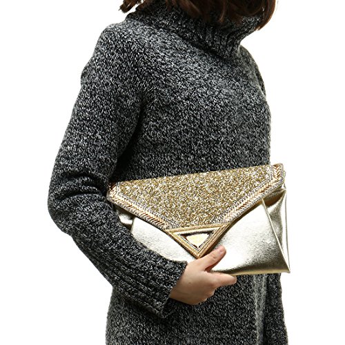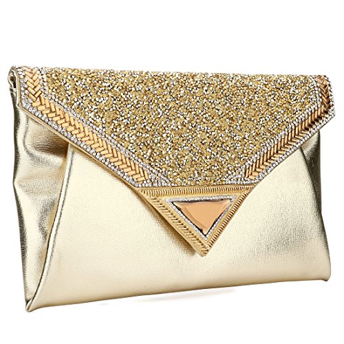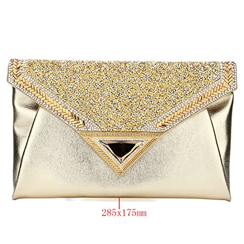 EROUGE Womens Envelope Rhinestone Clutch PU Leather Shoulder Bag Evening Prom Handbag with Chain