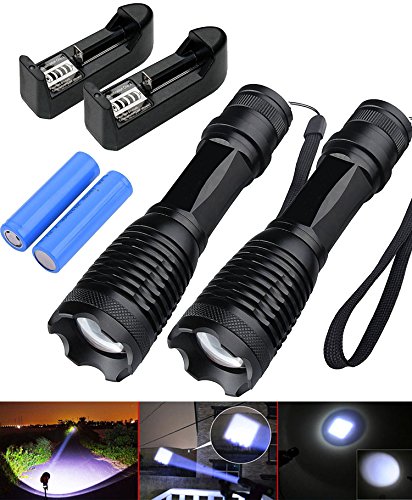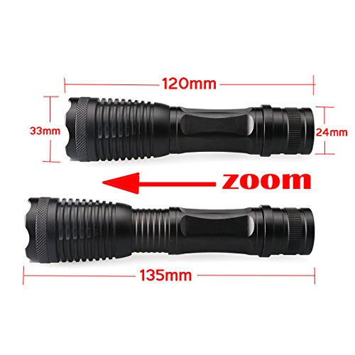 ledsniper 2Pcs Bright LED Tactical 1000LM Flashlight Pocket Size Waterproof 5 Mode Zoomable Led Flashlight