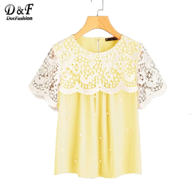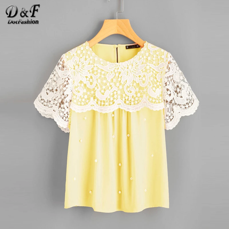 Decoration : Pearls, Contrast Lace, Sheer, Colorblock, Button, Beaded