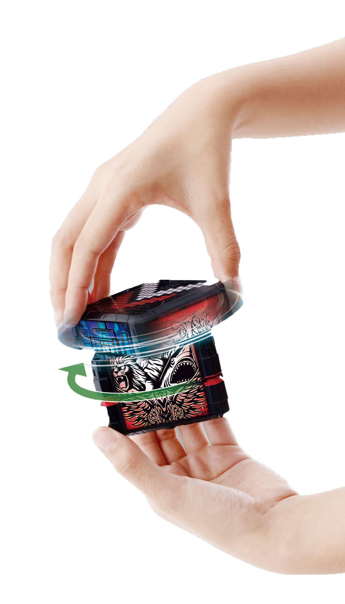 My 2 year old son loves jewelry and is playing around while watching the transformation scene many times. There was a sound ......... in the review of the other person, but it was not a small size that I was particularly concerned, I thought that it was good. I thought that if the glowing part behind the cube was a little softer ...... Because the child glows beautifully and inevitably looks directly at the ... .... I will teach it not to look directly at something like ......, putting on the floor, putting on a stuffed animal, ... but ... It seems not good for my eyes, that was disappointing.