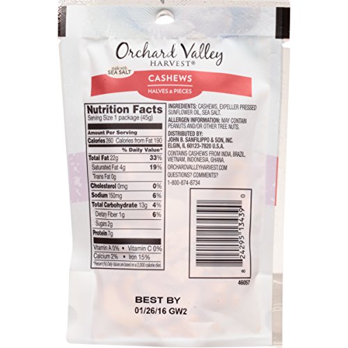 Orchard Valley Harvest Cashew Halves and Pieces with Sea Salt, 1.6 Ounces (Pack of 14)