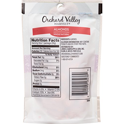 Orchard Valley Harvest Whole Natural Almonds, 1.4 Ounces (Pack of 14)