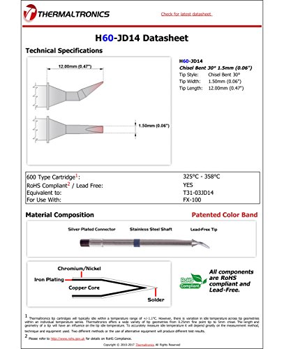 Thermaltronics H60-JD14 Chisel Bent 30deg 1.5mm (0.06") interchangeable for Hakko T31-03JD14