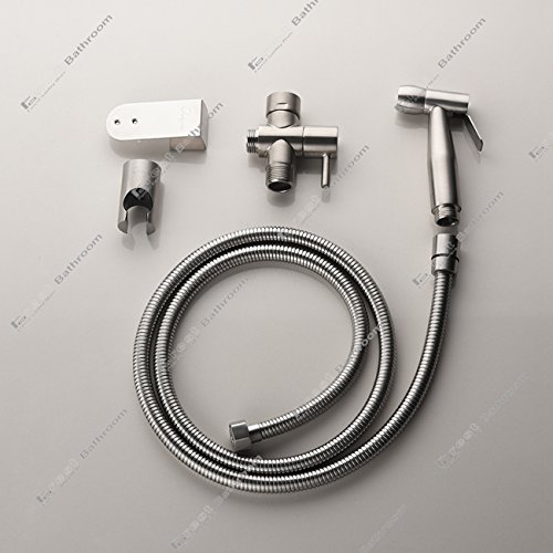 -. Feature : Bidet Sprayer Provides Easy & Efficient Way to Get Fresh w/Gentle Rise or Jet Spray / Getting Clean is Convenient and Frustration Free Without Leaks or Sprayer Problems, Easy Hand Bidet / Allow every member of family to use,easy to install (men, women and children) / Includes Brushed Nickel T Valve Adapter, Hose&Holder to Form Complete Set / Use: toilet, bathroom, kitchen, outdoor, garden, ect
