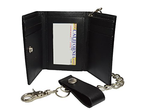 (BMF)/Accessories/Wallets, Money Key Organizers/DIRECT FROM USA/BMF Leather Trifold Biker Wallet with Chain New Tough Black Leather Version