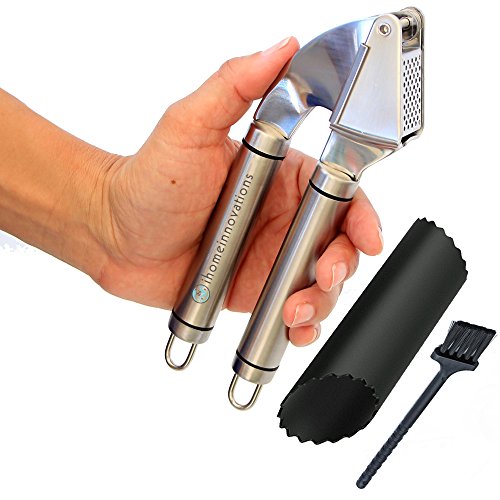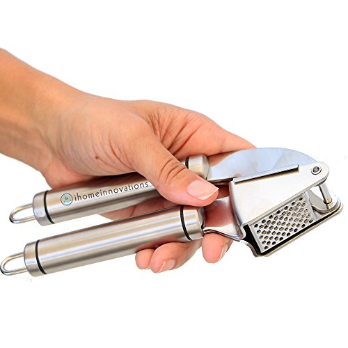 Kitchen Garlic Press Made From Stainless Steel - Professional & Stylish Chef Mincer Crusher & Smasher - Best For Garlic And Ginger Tool With Free Peeler - By iHomeInnovations