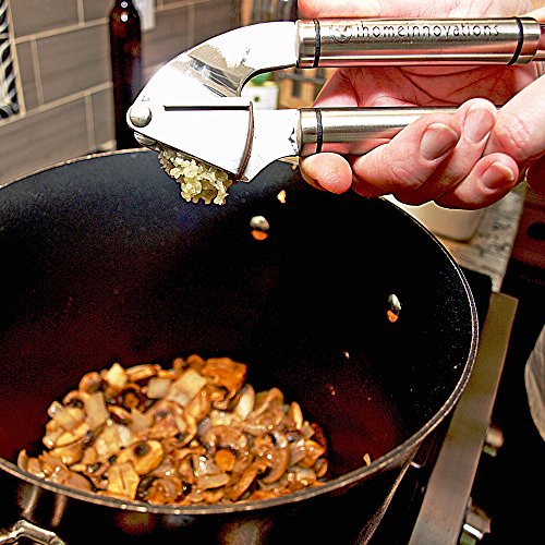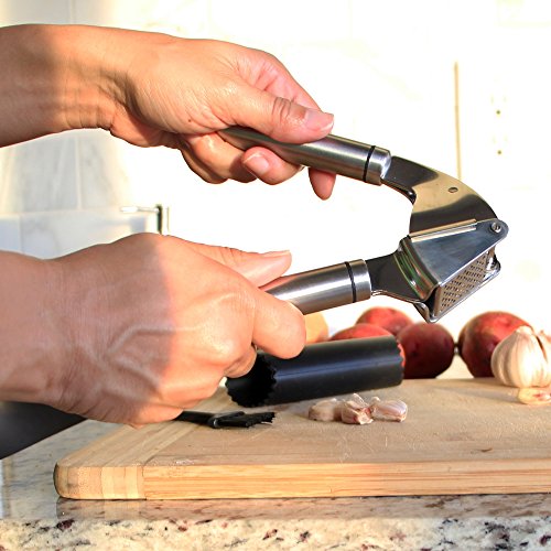 GETS THE GARLIC - The extra large capacity basket, and powerful lever action, allows you to mince a clove as quickly as possible. The hinge pin is extremely strong for maximum leverage making the pressing action easy.