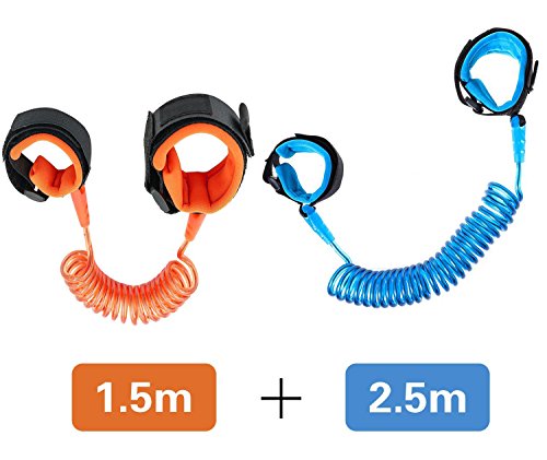 Easy to use:It has two comfortable cuffs, you only need to connect the anti lost wrist to adults and baby's wrist. The orange shrink chain can be extended to 4.9ft and the blue can be extended to8.2ft.