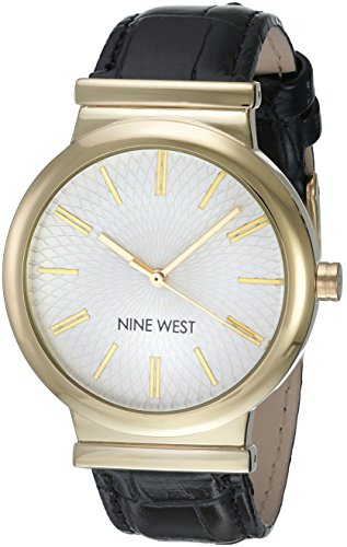 -. Title : Nine West Women's NW/1948WTBK Gold-Tone and Black Croco-Grain Strap Watch