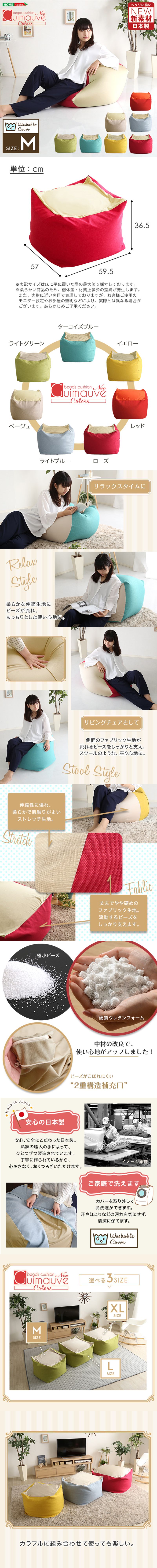 ●2wayで使える、洗えるカバー付きビーズクッション