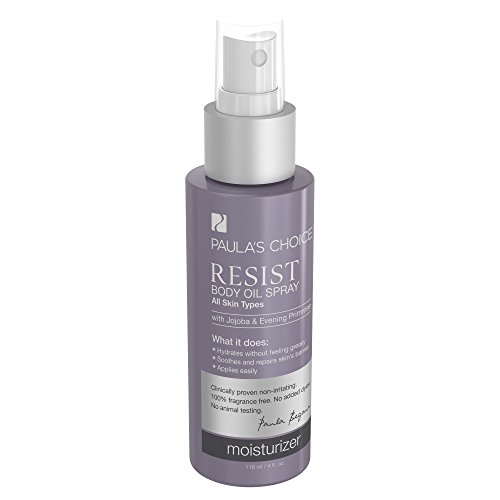 This gentle, moisturizing body spray is enriched with antioxidant-packed plant oils and emollients that instantly improve the appearance of dry skin. The easy-to-use spray bottle applies product from any angle, leaving a silky veil of lasting moisture without a slick, oily feel. Spray on luscious hydration and you will instantly see skin that looks beautifully healthy and smooth. This product has a concentrated, waterless formula whose carefully calibrated mix of coconut-derived triglycerides and gentle plant oils leaves even the driest skin feeling luxuriously smooth and soft-never slick or greasy. Loaded with replenishing fatty acids and natural antioxidants to help fight visible signs of aging, this body spray leaves a silky veil of lasting moisture. Bonus: The ingenious applicator sprays from any angle, making for quick and easy use! All Paula's Choice products are 100% fragrance free, clinically proven to be non-irritating, and never tested on animals.Feature