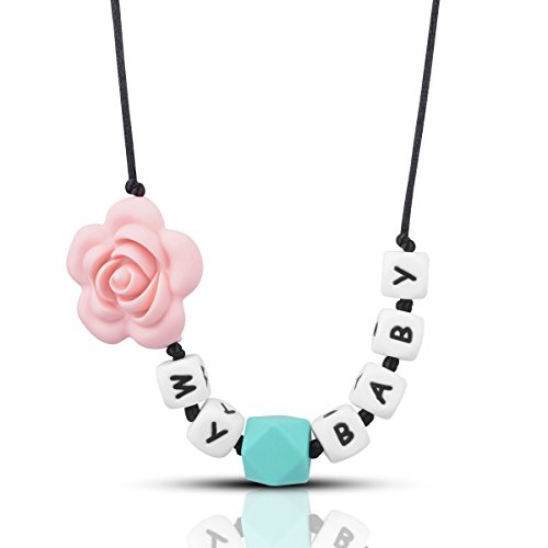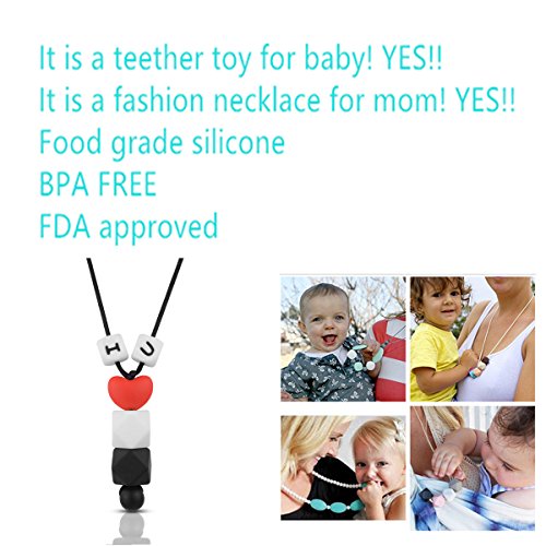 -. Title : Megoday Teething Necklace for Mom,Baby Teether Toys, Chew Beads Accessory,Silicone Charm Necklace, 100% BPA Free, Stylish & Natural,16",Length Adjustable…