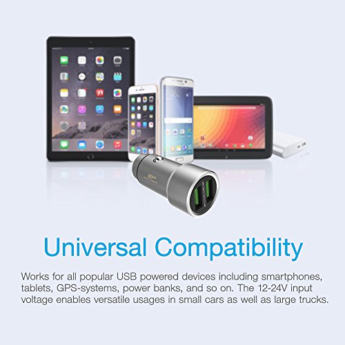 -. Title : Silicon Power Robust Metal 3.6A Fast Charging Dual USB Port Car Charger Adapter with LED indicator, 12-24 input voltage for small cars and large trucks,Silver (SP3A6ASYCC202P0S)