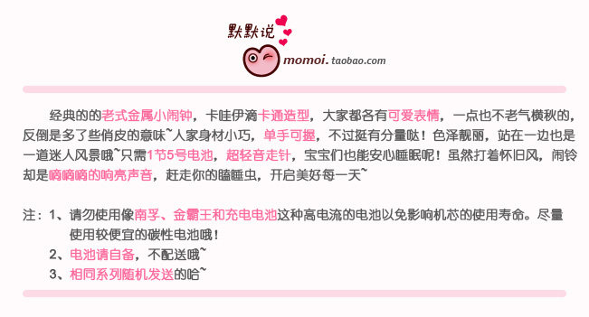 宝贝名称经典卡通造型金属3寸小闹钟   材   质  金属