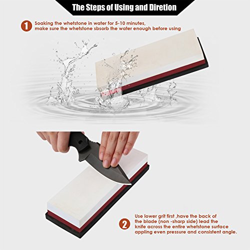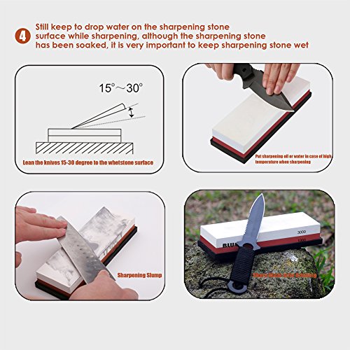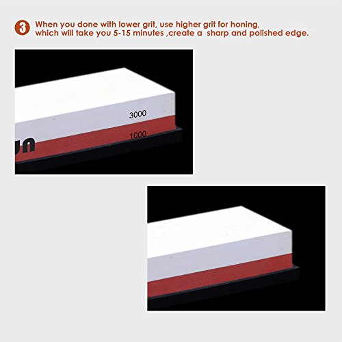 Knife Sharpening Sharpener Stone Whetstone Waterstone 1000 3000 Grit Silicon Non-slip Base and Ebook Included for Kitchen Knives, Tactical Knives, Hunting Knives, Scissors, Razors, Swords, and More