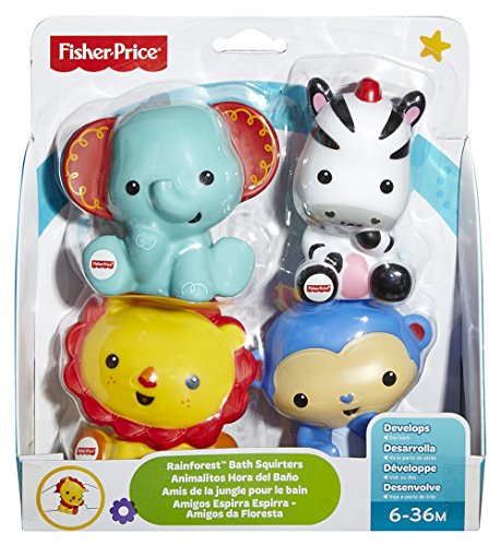 - 4 squeeze and squirt tub friends – zebra, lion, elephant & monkey!