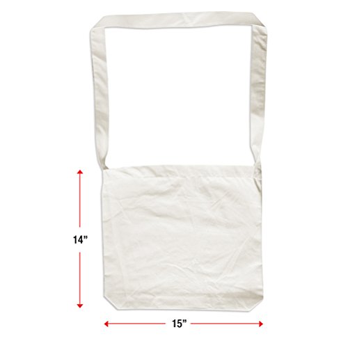 Green Earth Bags 3 Pack Natural Cotton Cross Body Canvas Reusable Grocery Tote Bags, 15.5" x 14.5"