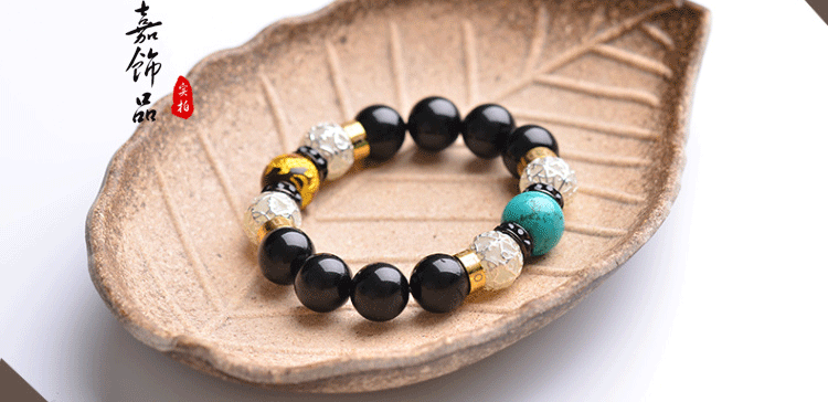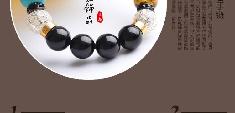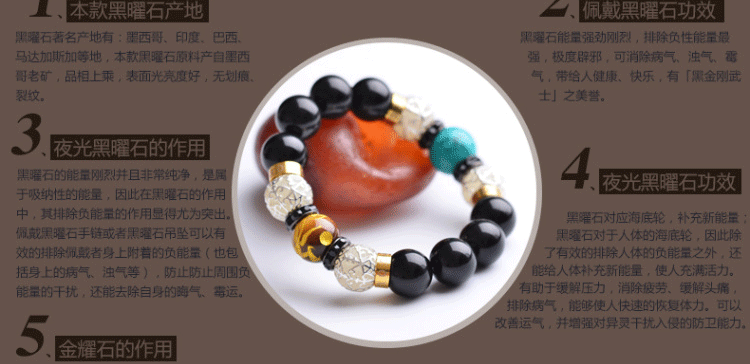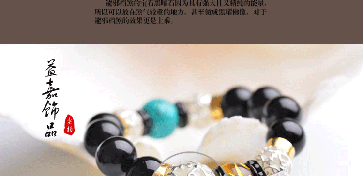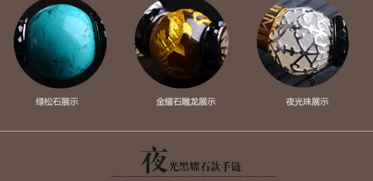 天然黑曜石男士手链水晶饰品 夜光手链虎眼石刻金龙生日礼物潮男