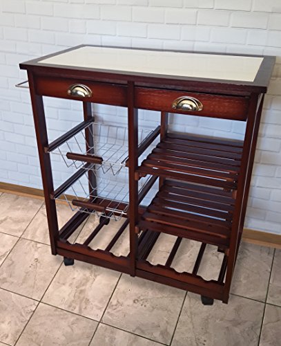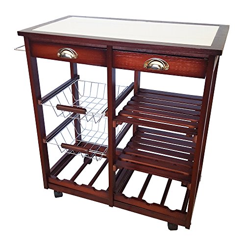 - Organize your life with this stylish and versatile wooden rolling kitchen cart with drawers and wine storage.