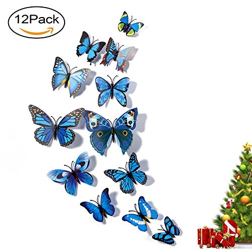 12-Piece 3D Blue Butterfly Wall Stickers DIY Art Decor Crafts For Hallowmas Thanksgiving Christmas New Year Decor Nursery Classroom Offices Kids...