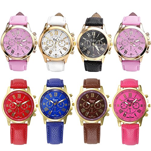 -. Title : Doinshop 8PCs Women Fashion Geneva Roman Numerals PU Leather Wrist Watches Wholesale
