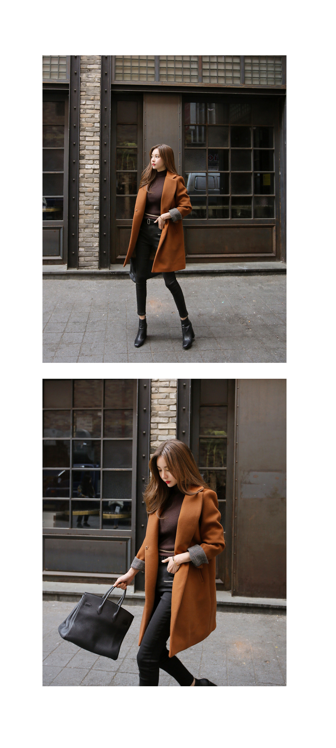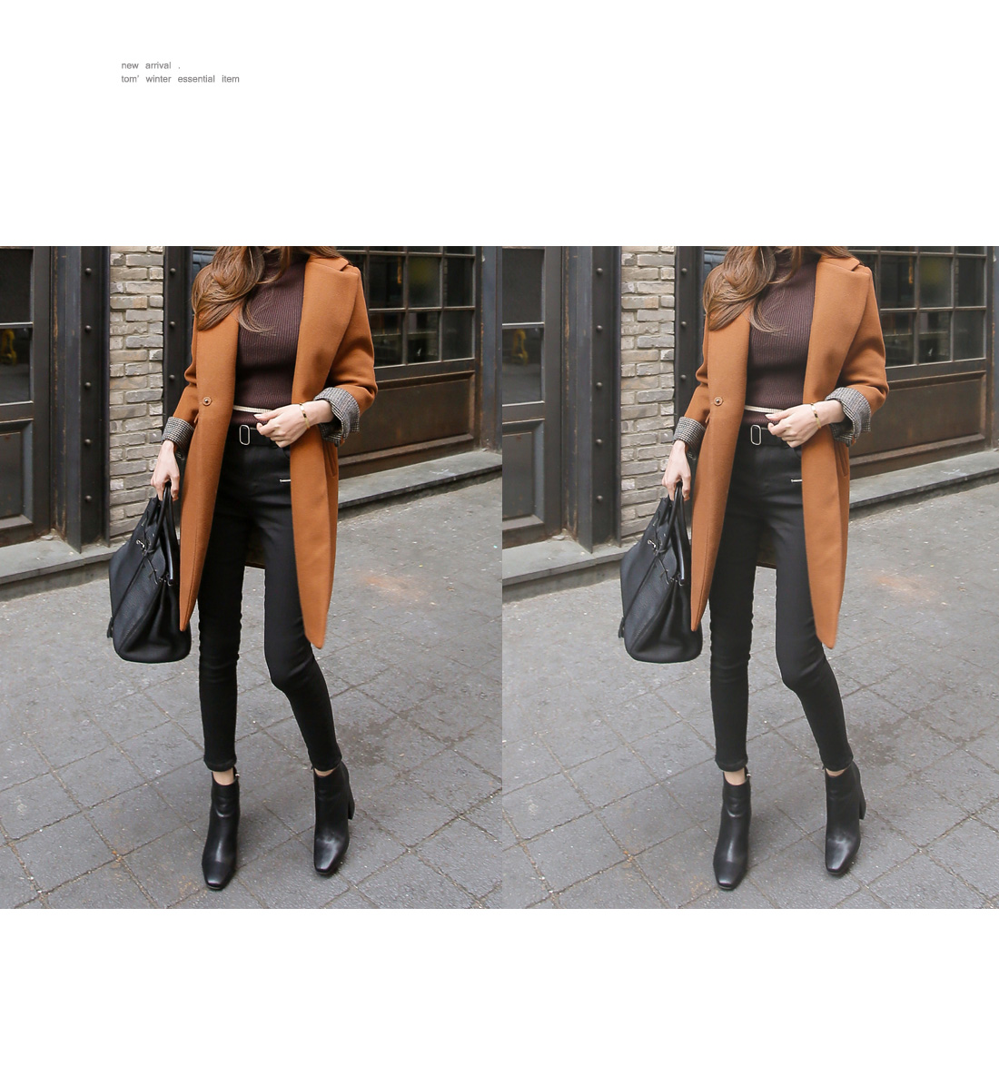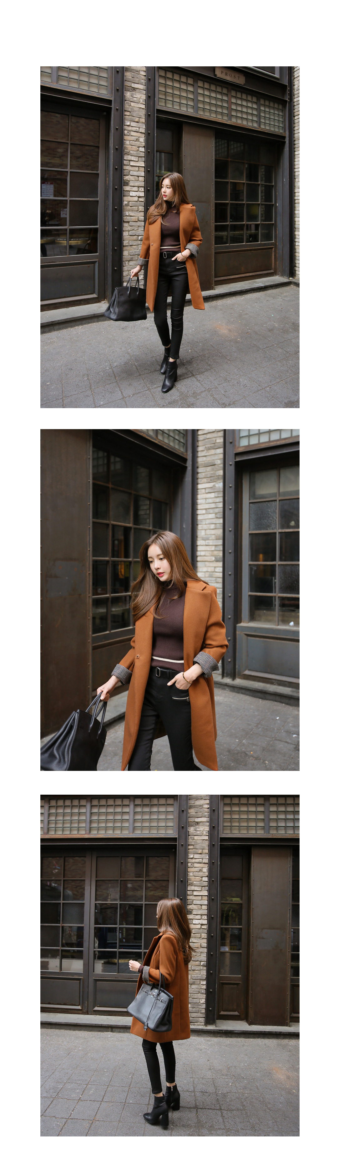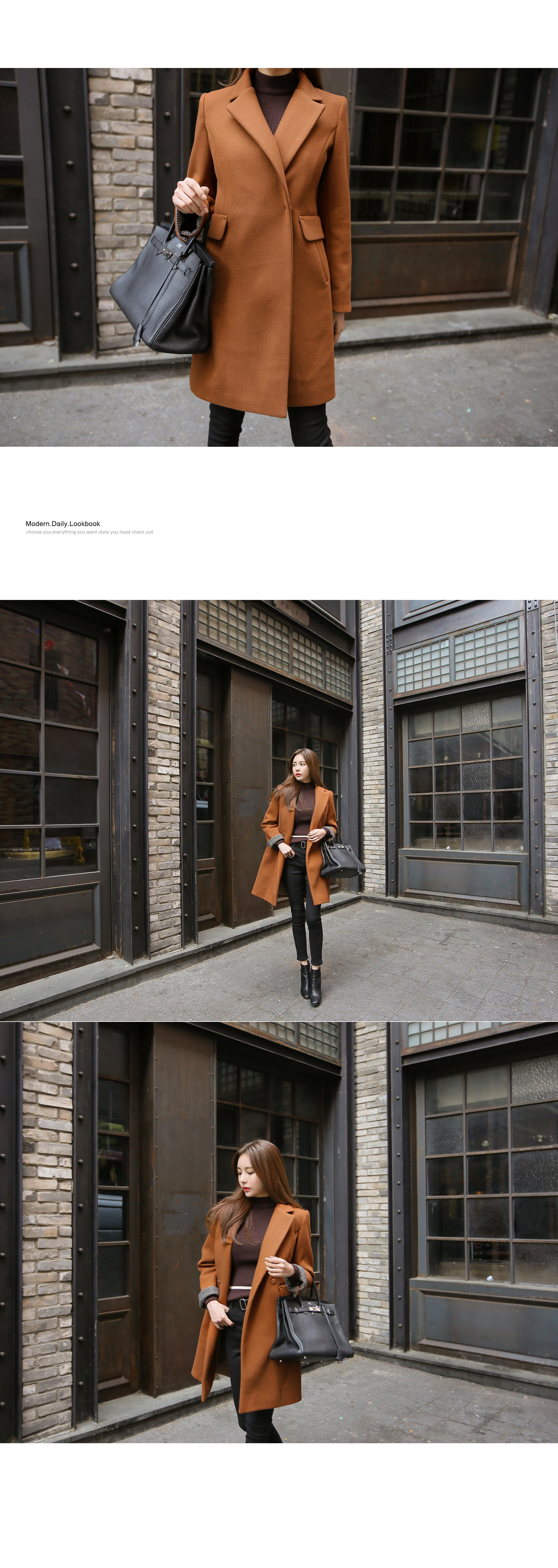 깔끔하면서도 세련된 무드의 소매 배색 코트를 소개합니다.