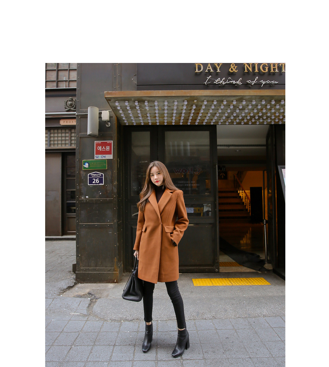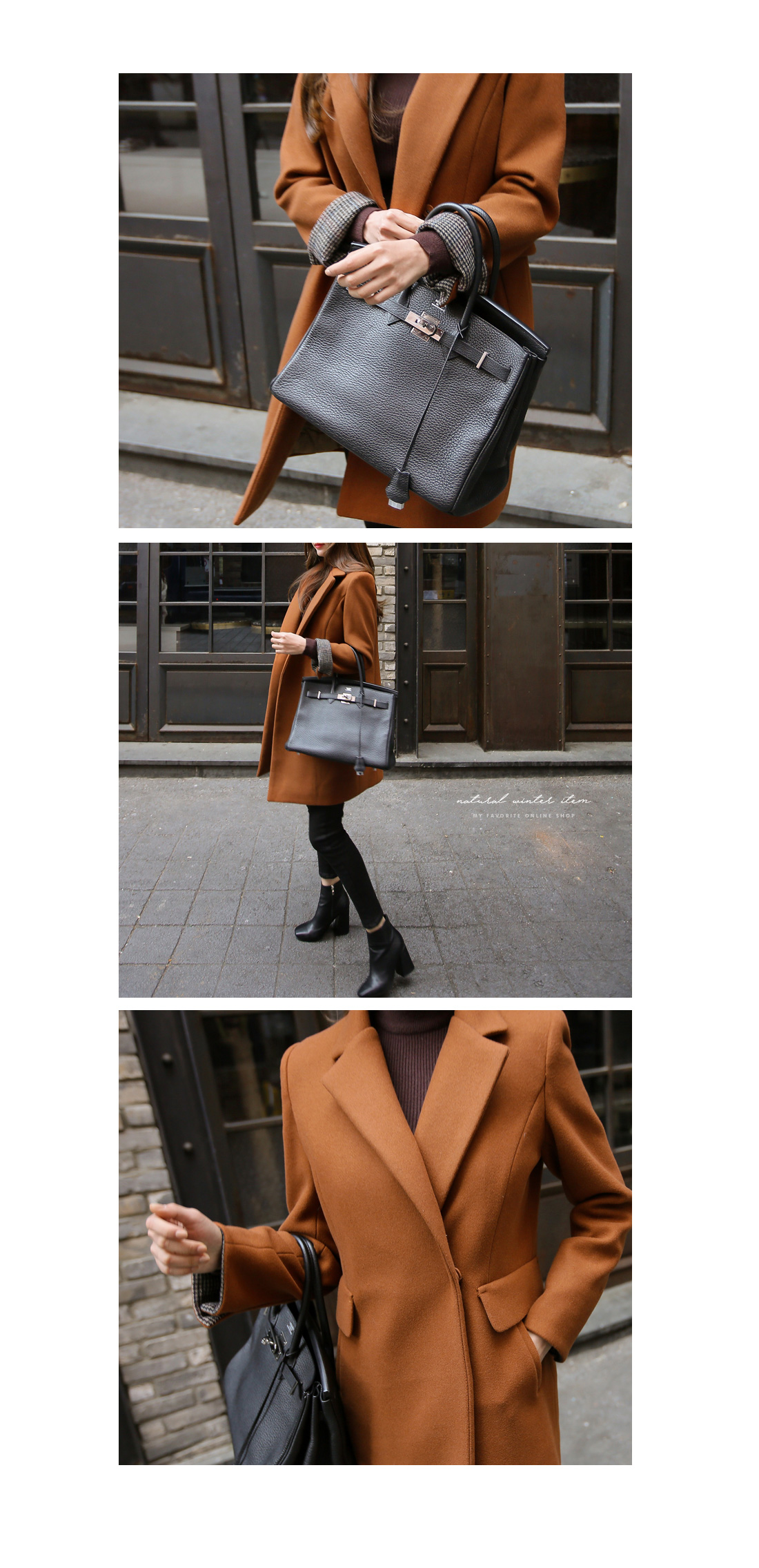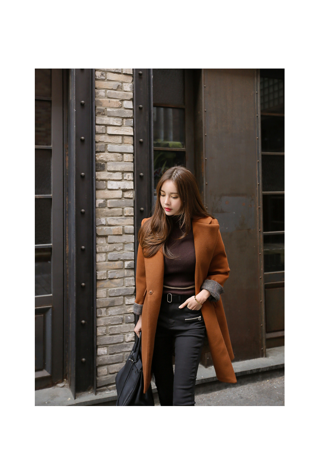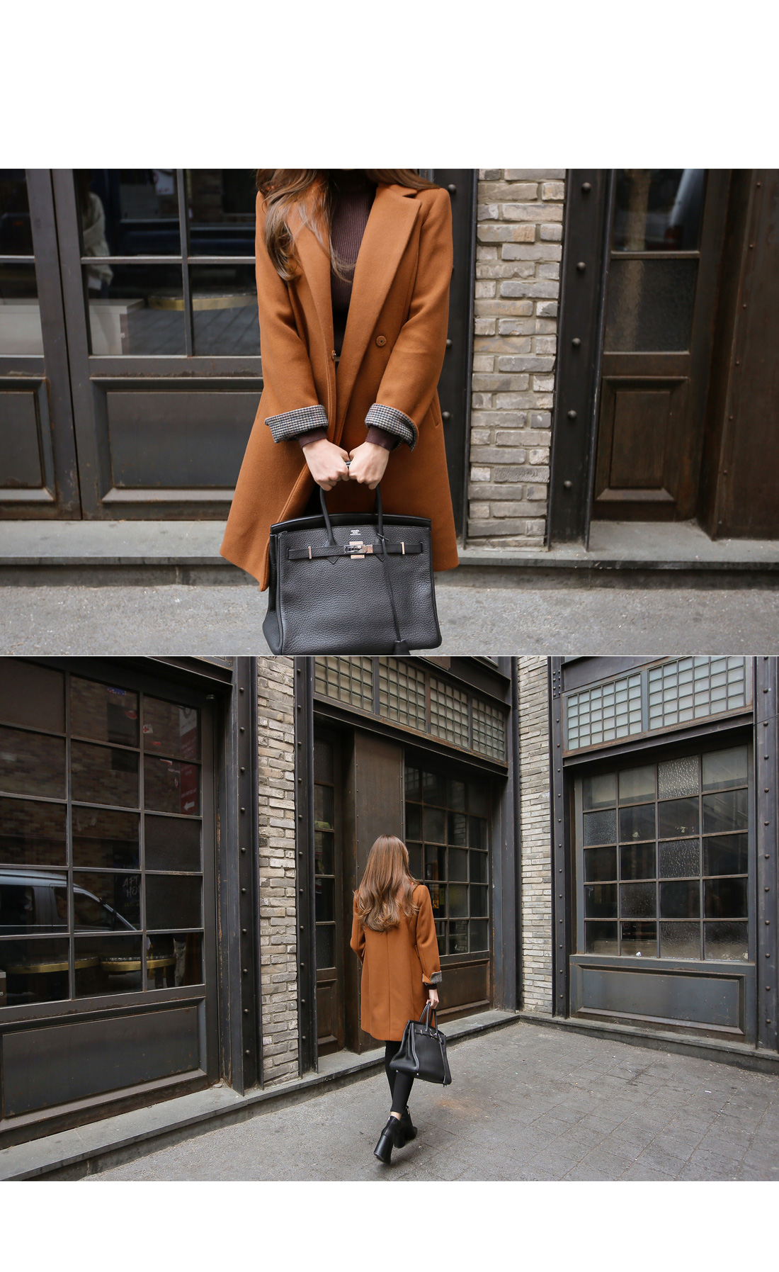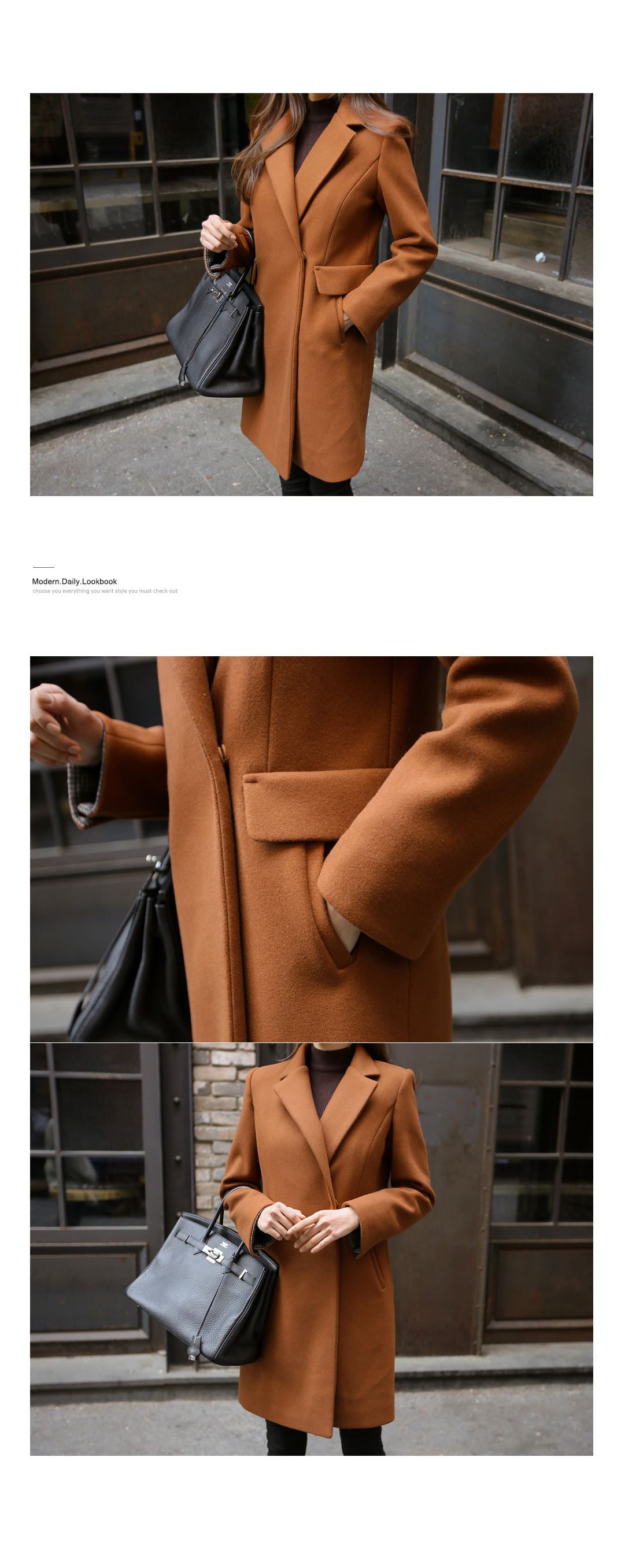 깔끔하면서도 세련된 무드의 소매 배색 코트를 소개합니다.