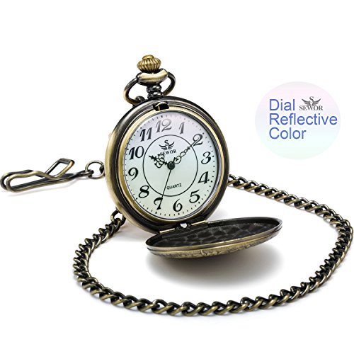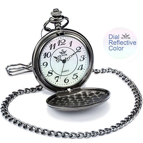 -. Title : SEWOR Classical Flower Case Quartz Pocket Watch Shell Dial With Two Type Chain(Leather+Metal)