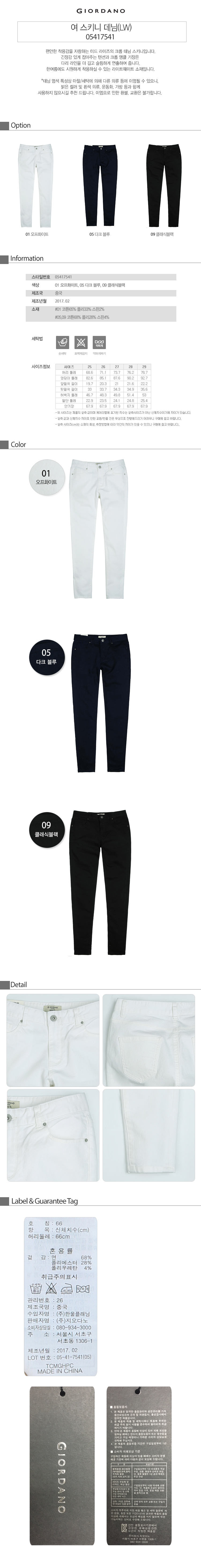 | 소재 | #01 코튼65% 폴리33% 스판2% #05,09 코튼68% 폴리28% 스판4% |