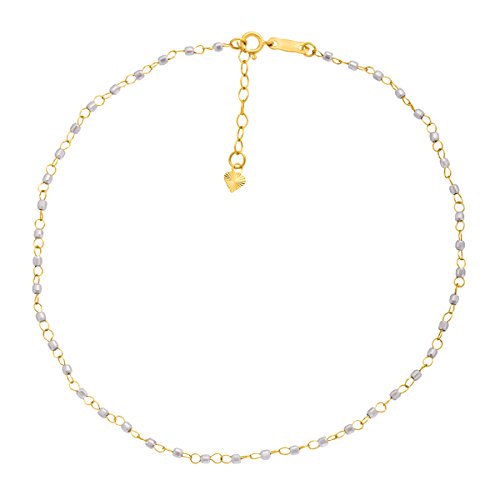 -. Title : Just Gold Beaded Anklet Bracelet in 14K Two-Tone Gold