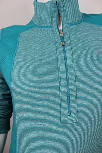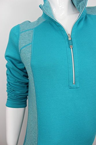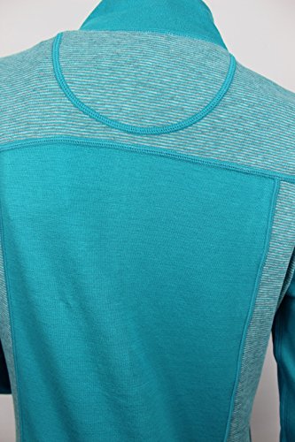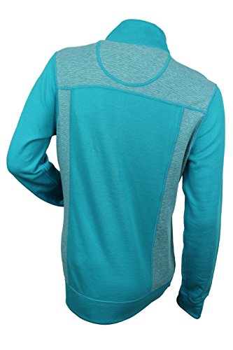This turquoise color block reversible sweater by Tommy Bahama is crafted in a breathable cotton blend knit, is designed with a custom fit silhouette and features a zipper fastening mock neck, striped front&back side panel and yoke, in-set long sleeve, banded cuffs and hem and is enhanced with cover stitch sewingFeature