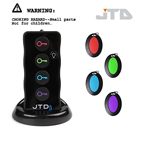 JTD Wireless RF Item Locator/Key Finder with LED flashlight and base support. With 4 Receivers Key Finder-Wireless key RF locator, Remote Control, Pet, Cell, Wireless RF Remote Item, Wallet Locator. (4 Receivers)