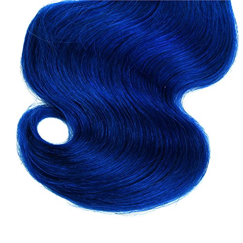 Brazilian Body wave ombre human hair 4 bundles Weft Remy Human Virgin Hair Extension (1b/blue Natural Black to Blue) by Yaki Beauty
