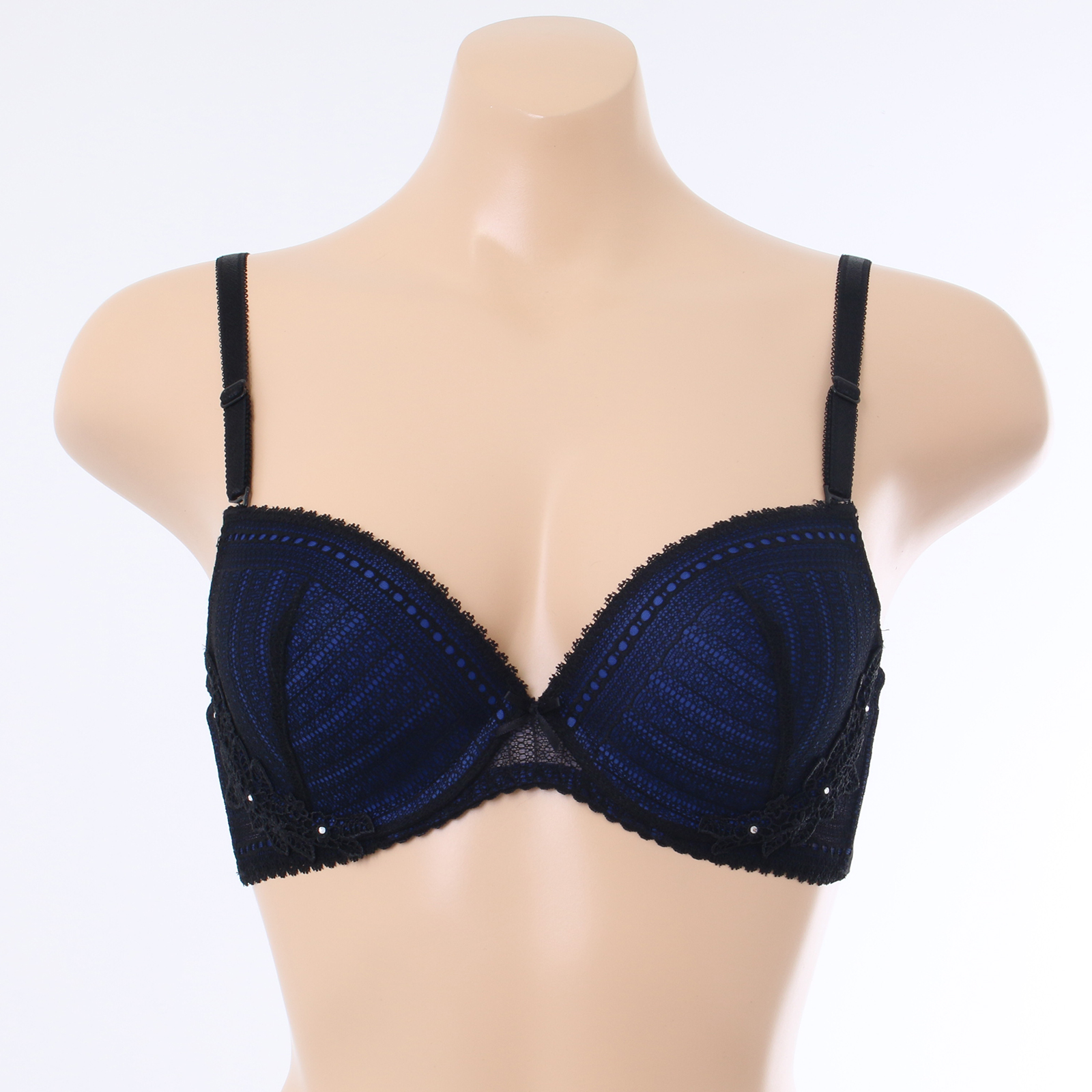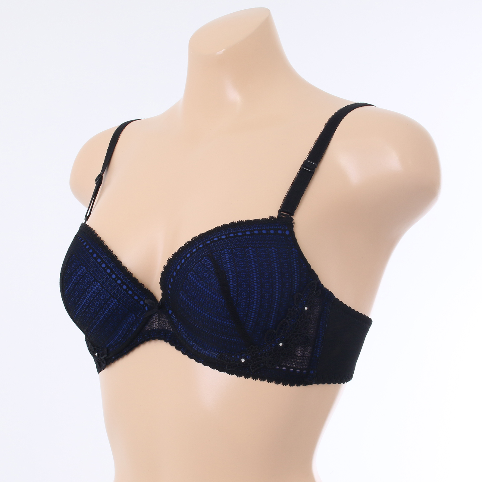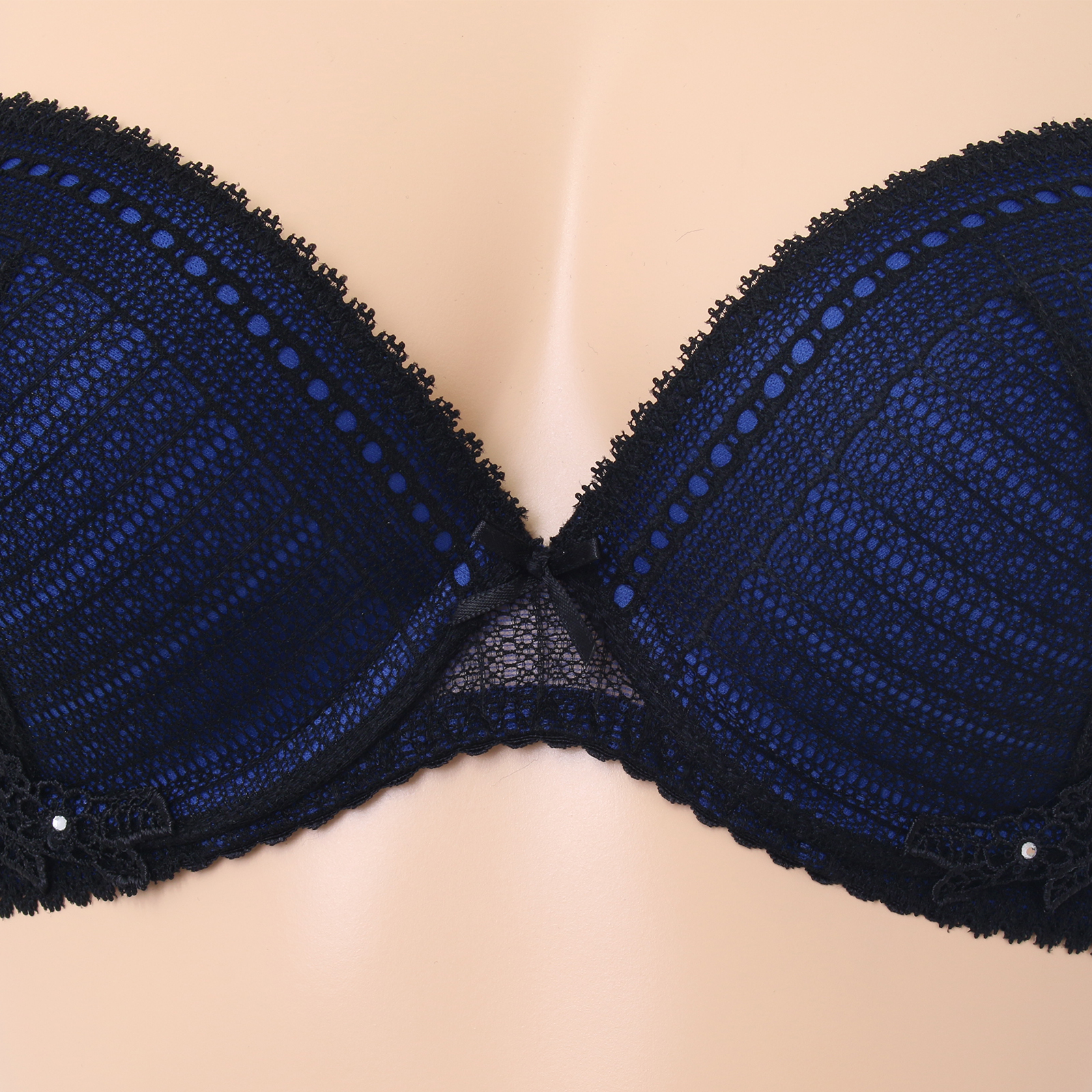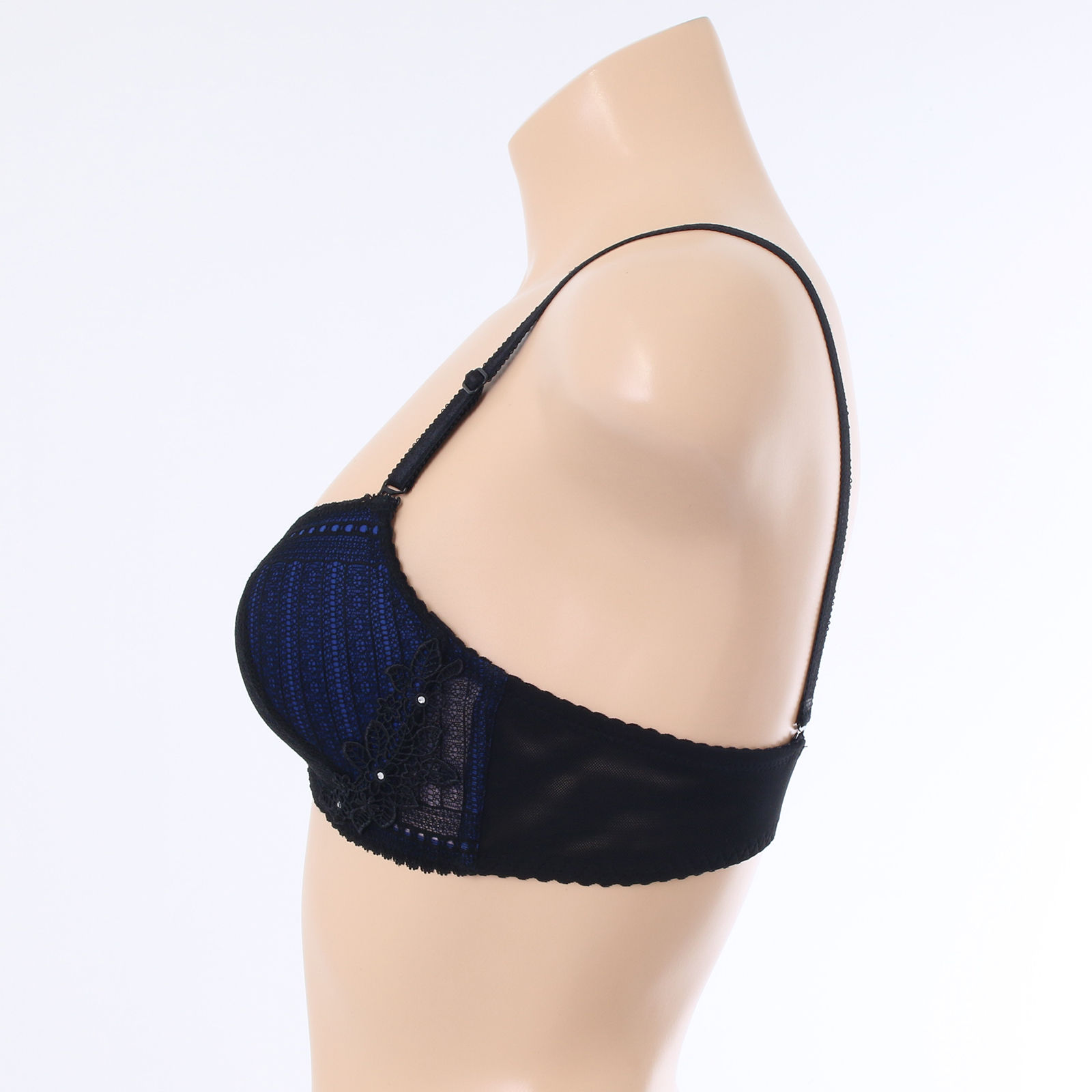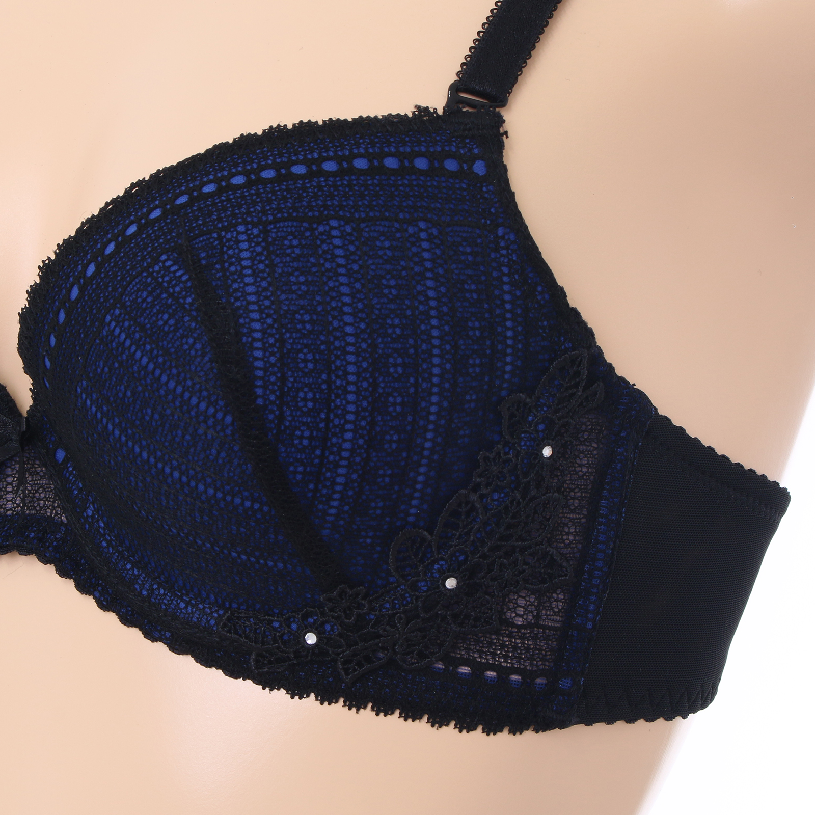 기본 3/4컵 스타일로 가슴을 잘 모아주며 세시한 느낌의 투톤색상의 브래지어입니다.