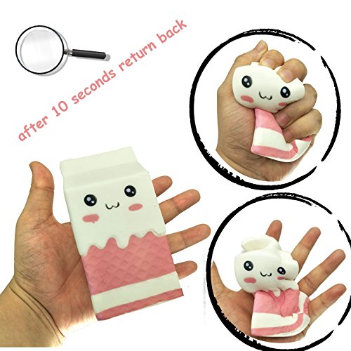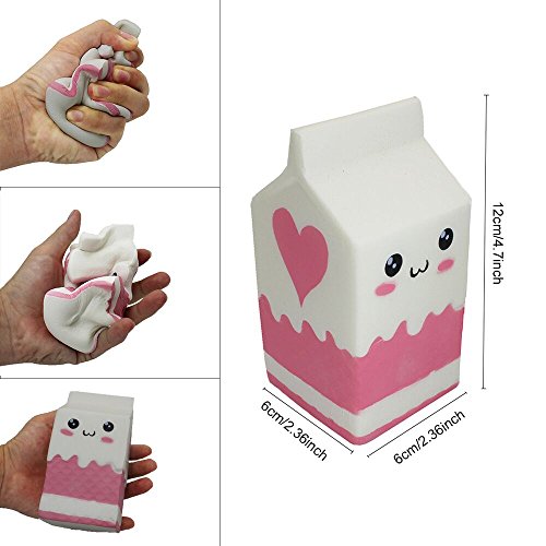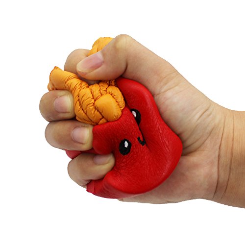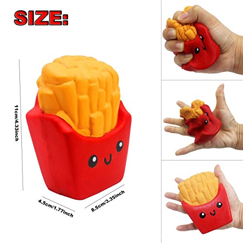 Size: slow rising french fries squishies:4. 33'' x 3. 35'' x 1. 7'', decompression squeeze milk box toy:4.7'' x 2.36'' x 2.36''; fun to play.