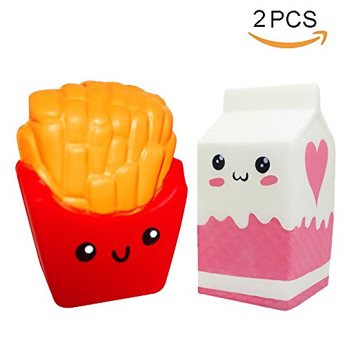 Color: 2 pack in total. 1 pc french fries squishies and 1pc milk box squishies in the original package.