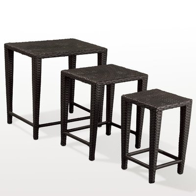 -. Brand : Best Selling Home -. Color : Black -. EAN : 0816764014791 -. Feature : Weather-resistant resin wicker in black / Protected against UV damage / Tables nest when not in use / Fully assembled / Small table: 12L x 12W x 18.6H in. -. Label : Best Selling Home Decor Furniture LLC -. Manufacturer : Best Selling Home Decor Furniture LLC -. MPN : 217539 -. PackageQuantity : 1 -. PartNumber : 217539 -. ProductGroup : Furniture -. ProductTypeName : HOME_FURNITURE_AND_DECOR -. Publisher : Best Selling Home Decor Furniture LLC -. Studio : Best Selling Home Decor Furniture LLC -. Title : Black All Weather Wicker Nesting End Tables - Set of 3 -. UPC : 816764014791